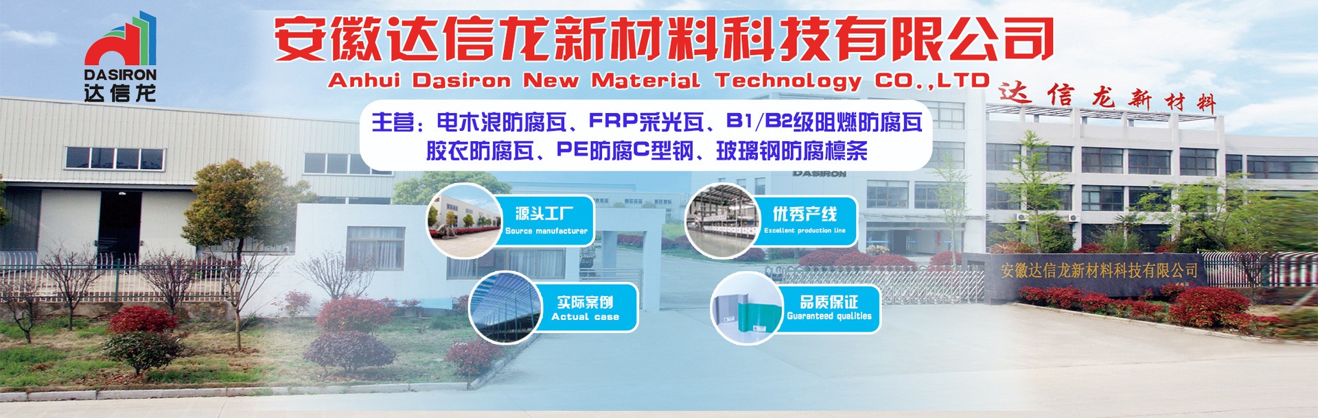 安徽達(dá)信龍新材料科技有限公司是具有完全自主知識(shí)產(chǎn)權(quán),主要致力于玻璃鋼防腐系列產(chǎn)品,防腐新材料的科研、開(kāi)發(fā)、銷(xiāo)售,是一家多元化,綜合性的大型FRP防腐制品專(zhuān)業(yè)化生產(chǎn)企業(yè),公司生產(chǎn)設(shè)備領(lǐng)先,技術(shù)實(shí)力雄厚。公司以電木浪防腐板、FRP采光瓦、阻燃防腐瓦、大承重防腐瓦、膠衣防腐瓦、玻璃鋼防腐檁條、玻璃鋼防腐天溝、玻璃鋼冷藏車(chē)廂板、PE防腐C型鋼檁條為主導(dǎo)產(chǎn)品。公司擁有3條FRP專(zhuān)業(yè)的柔性生產(chǎn)線(xiàn),2條自動(dòng)PE防腐C型鋼自動(dòng)成型線(xiàn),2條模壓生產(chǎn)線(xiàn),年生產(chǎn)能力可達(dá)2.8萬(wàn)噸。公司擁有一支高素質(zhì)的專(zhuān)業(yè)科研技術(shù)隊(duì)伍,擁有研究生學(xué)位的技術(shù)人員2名,高級(jí)工程師1名;公司以技術(shù)創(chuàng)···