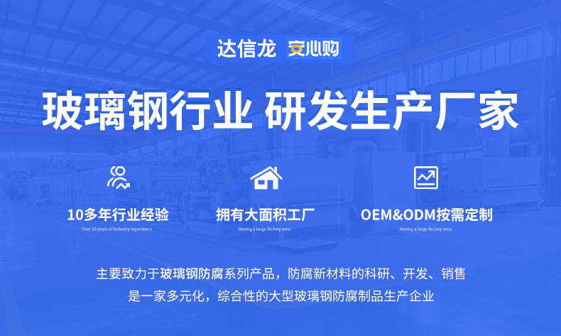 安徽達(dá)信龍新材料科技有限公司是具有完全自主知識(shí)產(chǎn)權(quán),主要致力于玻璃鋼防腐系列產(chǎn)品,防腐新材料的科研、開(kāi)發(fā)、銷(xiāo)售,是一家多元化,綜合性的大型FRP防腐制品專(zhuān)業(yè)化生產(chǎn)企業(yè),公司生產(chǎn)設(shè)備領(lǐng)先,技術(shù)實(shí)力雄厚。公司以電木浪防腐板、FRP采光瓦、阻燃防腐瓦、大承重防腐瓦、膠衣防腐瓦、玻璃鋼防腐檁條、玻璃鋼防腐天溝、玻璃鋼冷藏車(chē)廂板、PE防腐C型鋼檁條為主導(dǎo)產(chǎn)品。公司擁有3條FRP專(zhuān)業(yè)的柔性生產(chǎn)線(xiàn),2條自動(dòng)PE防腐C型鋼自動(dòng)成型線(xiàn),2條模壓生產(chǎn)線(xiàn),年生產(chǎn)能力可達(dá)2.8萬(wàn)噸。公司擁有一支高素質(zhì)的專(zhuān)業(yè)科研技術(shù)隊(duì)伍,擁有研究生學(xué)位的技術(shù)人員2名,高級(jí)工程師1名;公司以技術(shù)創(chuàng)···